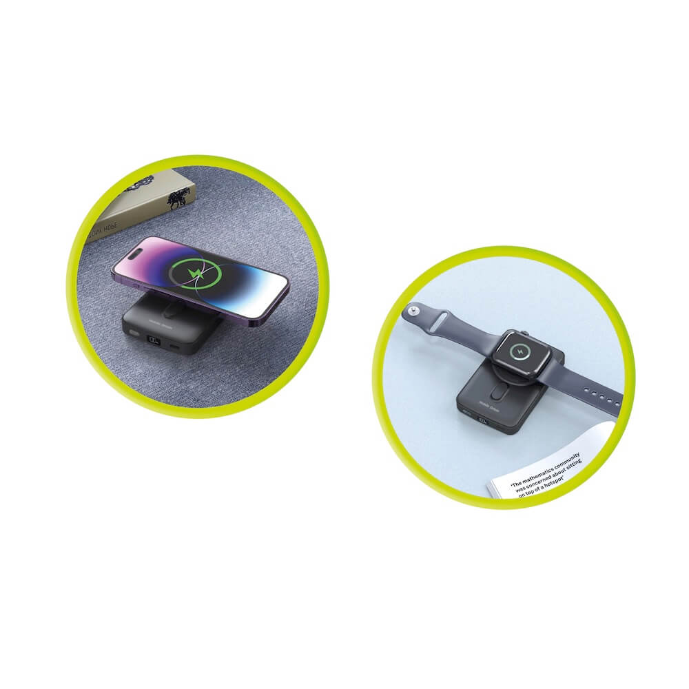 Тази преносима батерия е идеална за хора в движение, които искат да зареждат своите устройства бързо и удобно. Със своите вградени магнити, тя предлага стабилно захващане и лесна употреба, а допълнителният USB-C порт позволява зареждане на две устройства едновременно.