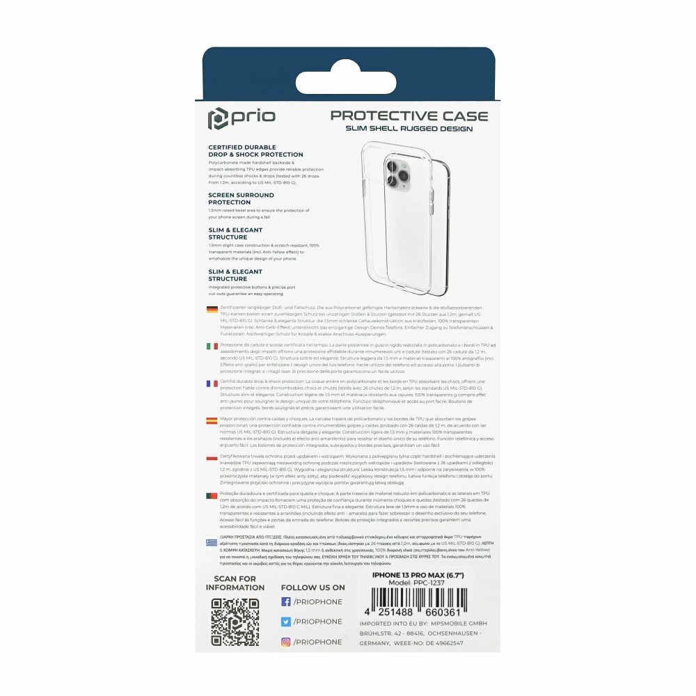 Prio Protective Hybrid Cover - хибриден кейс с най-висока степен на защита за iPhone 13 Pro Max (прозрачен)