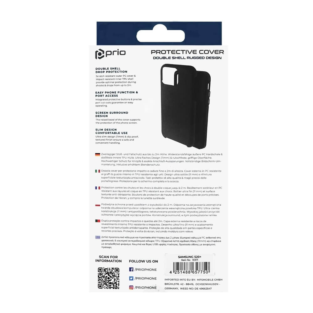 Prio Protective Hybrid Cover - хибриден кейс с най-висока степен на защита за Samsung Galaxy S20 Plus (черен)