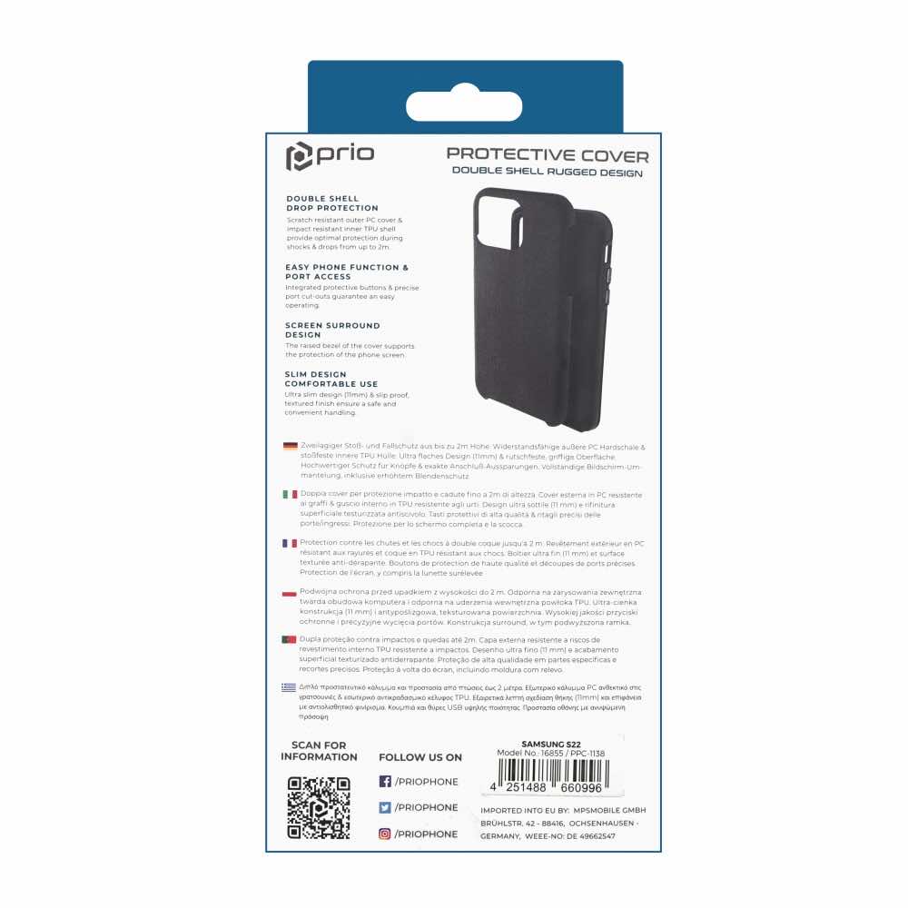 Prio Protective Hybrid Cover - хибриден кейс с най-висока степен на защита за Samsung Galaxy S22 (черен)