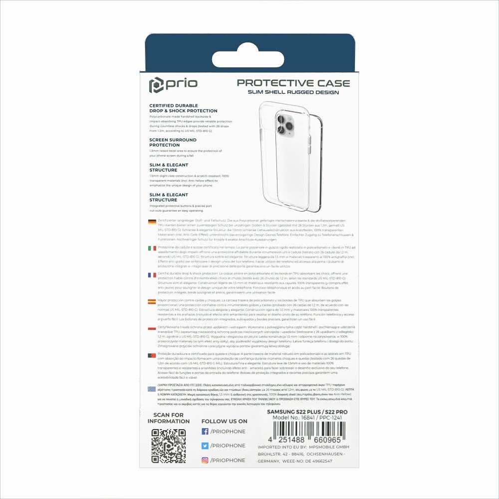 Prio Protective Hybrid Cover - хибриден кейс с най-висока степен на защита за Samsung Galaxy S22 Plus (прозрачен)