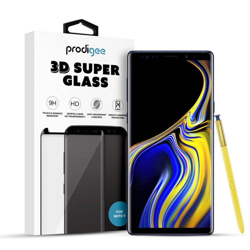 Prodigee 3D Super Glass - калено стъклено защитно покритие за дисплея на Samsung Galaxy Note 9 (прозрачен-черен)