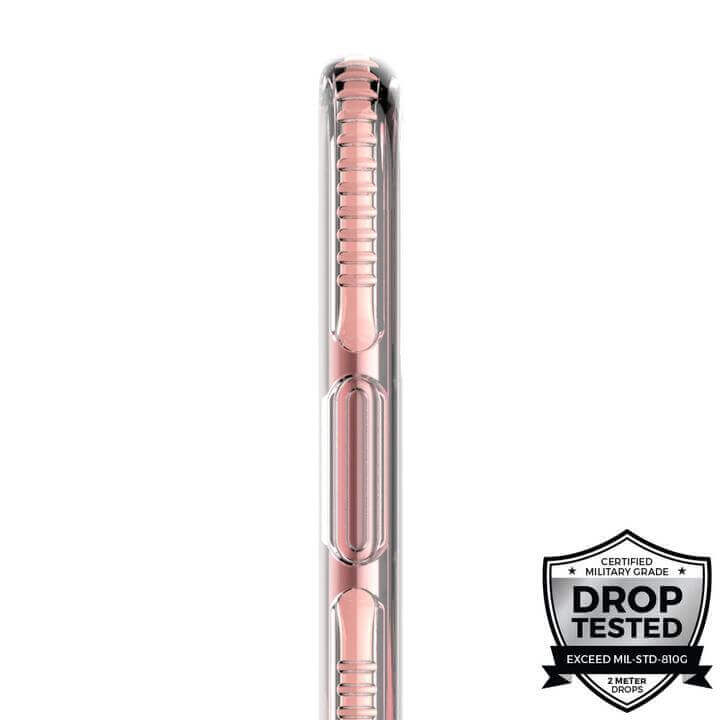 § За да предпази дисплея от надраскване, в случай че смартфона е поставен „с лице” към повърхност, от удар или изпускане, кейса разполага с т.нар. Edge Functionality, което означава, че ръбовете са издадени малко над самия дисплей