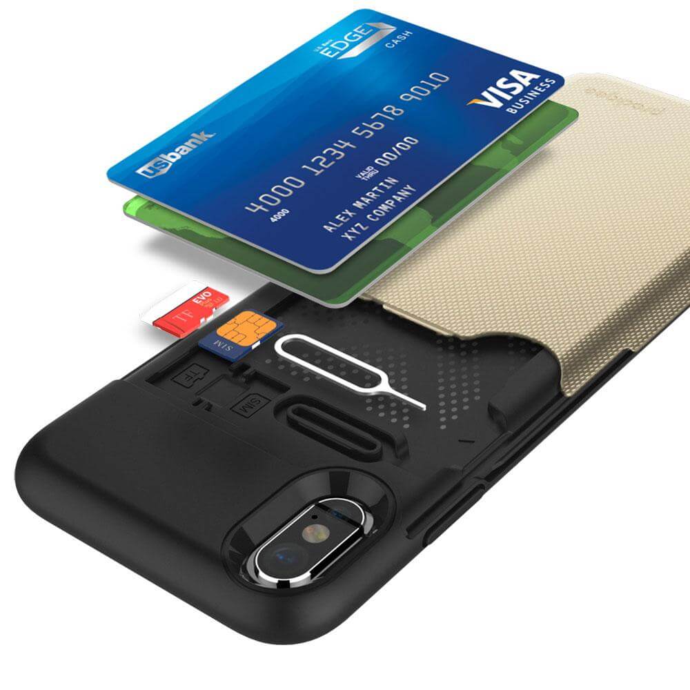 § Налично специално отделение, в задната част на кейса, което се скрива и открива чрез плъзване на твърдата част. В него можеш да съхраняваш до две банкови карти (кредитна, дебитна), nano SIM карта, microSD карта памет и скоба за вадене на сим картата от телефона