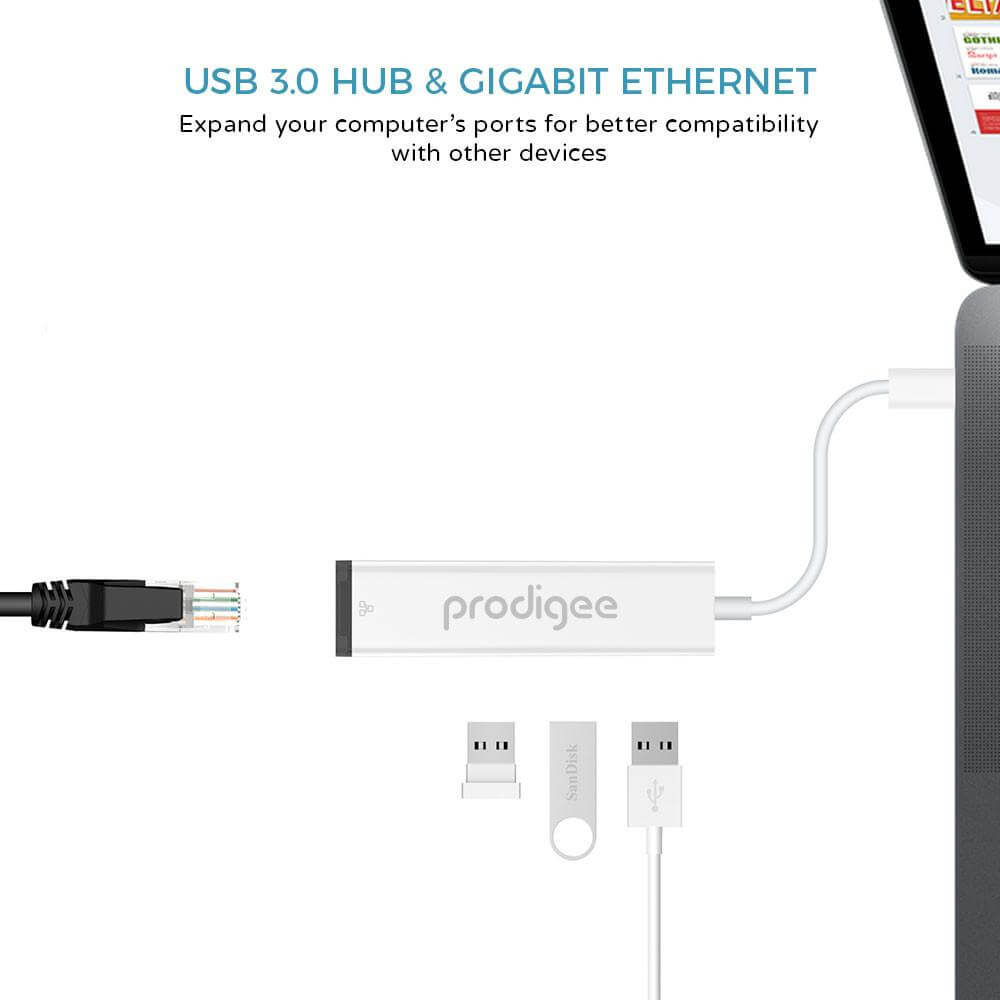 Prodigee USB-C to USB-A Hub & Ethernet - USB хъб с 3 USB изхода и Ethernet порт за устройства с USB-C