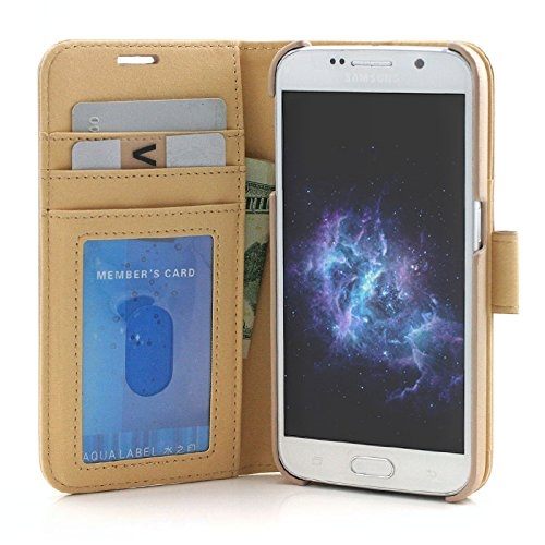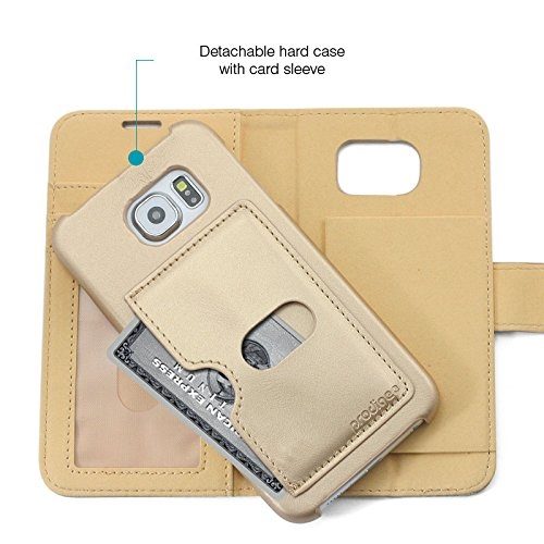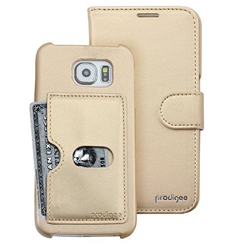 Prodigee Wallegee+ Case - кожен калъф, тип портфейл с отделящ се кейс и поставка за Samsung Galaxy S7 (златист)