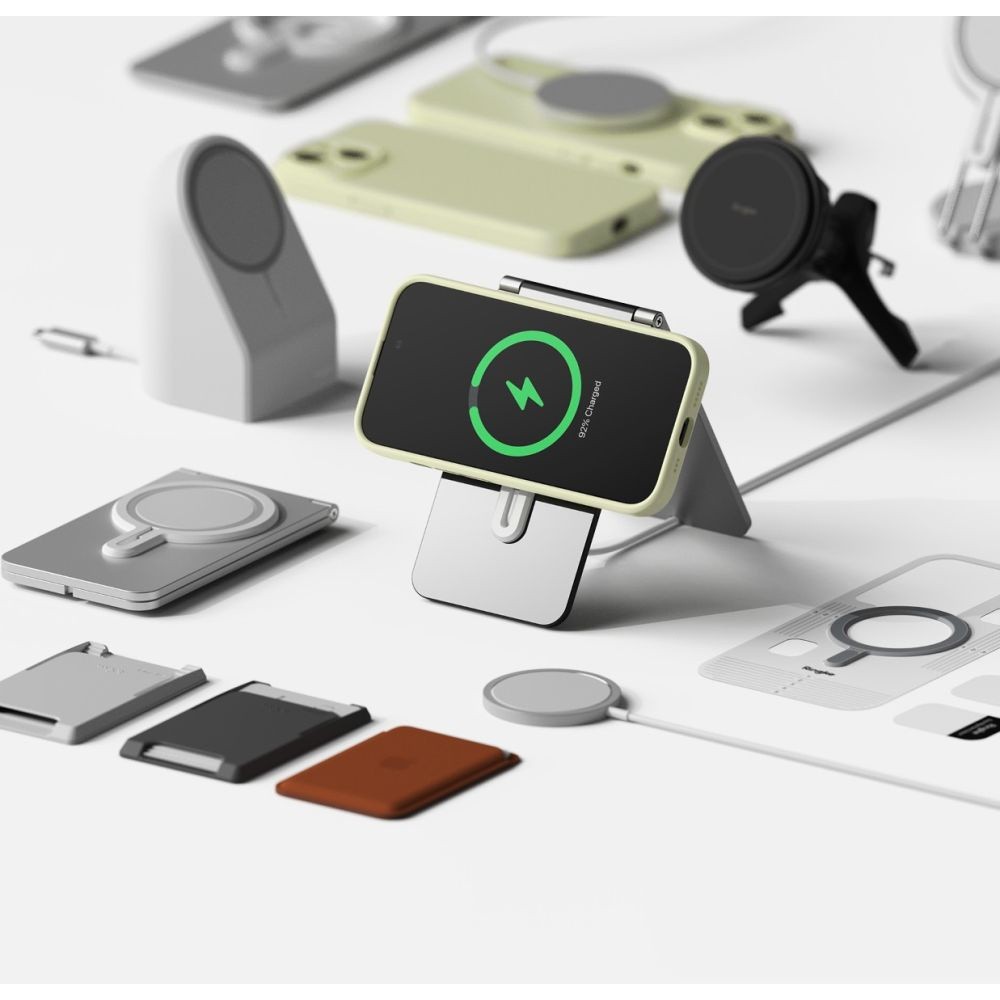 - • Кейсът е снабден с магнит, благодарение на който е съвместим с MagSafe аксесоари. Това е изцяло нов стандарт на Apple за бързо и лесно свързване на аксесоари и безжични зарядни устройства
