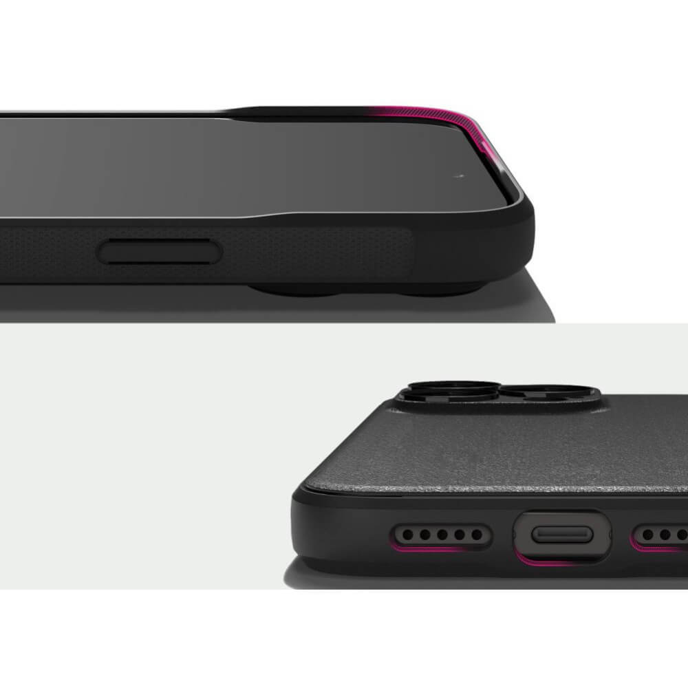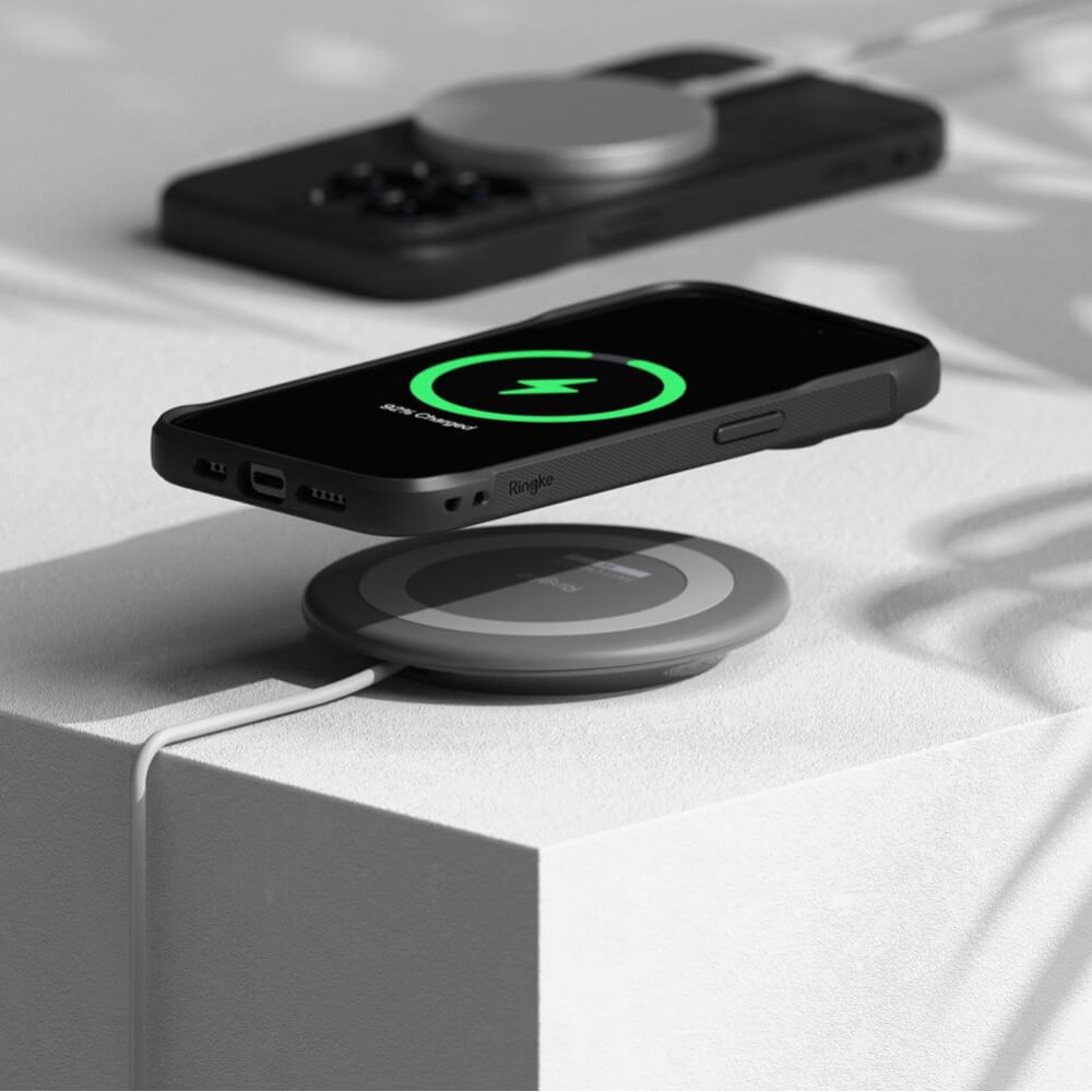 - • Кейсът е снабден с магнит, благодарение на който е съвместим с MagSafe аксесоари. Това е изцяло нов стандарт на Apple за бързо и лесно свързване на аксесоари и безжични зарядни устройства