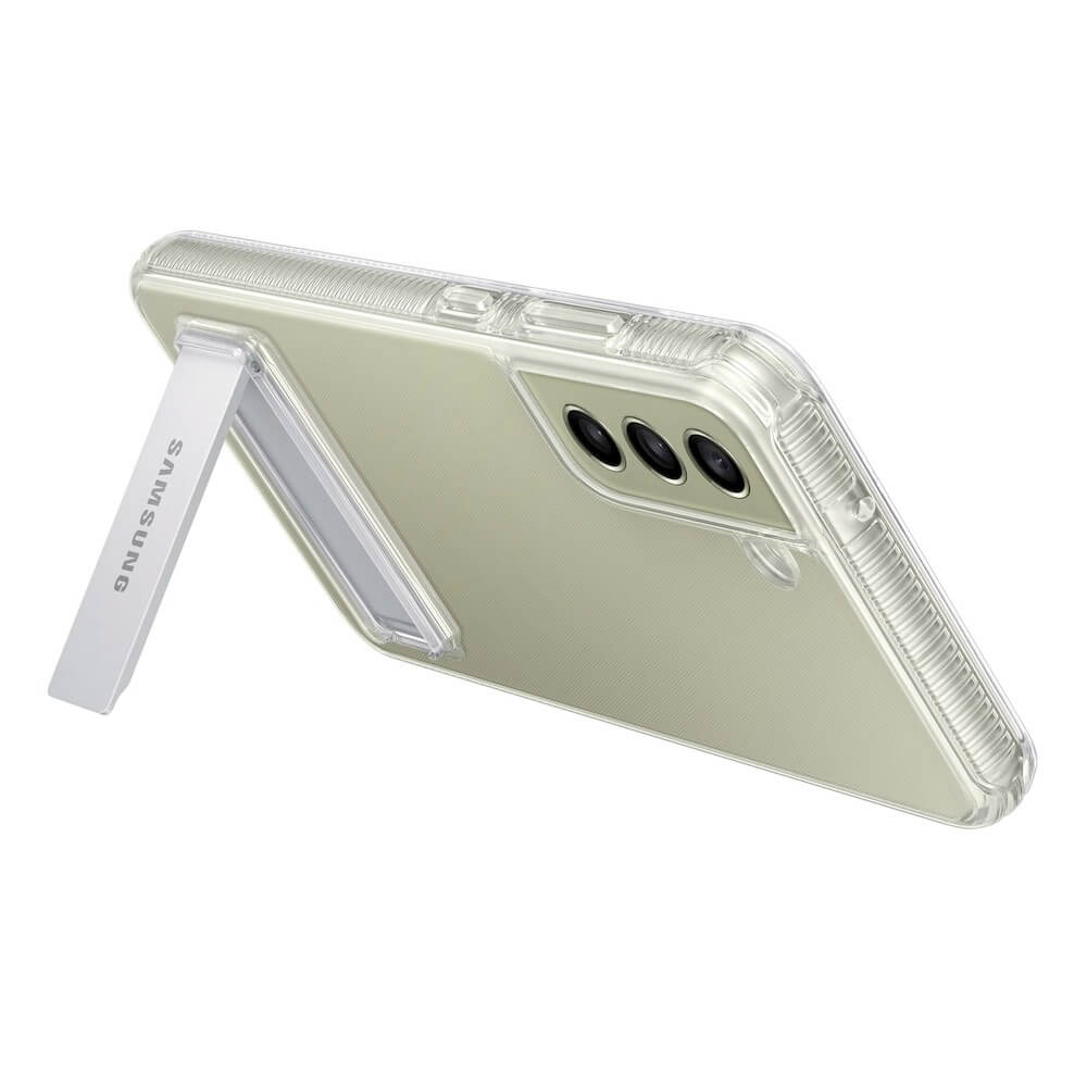 Samsung Clear Standing Cover EF-JG990CT - оригинален удароустойчив хибриден кейс с поставка за Samsung Galaxy S21 FE (прозрачен)