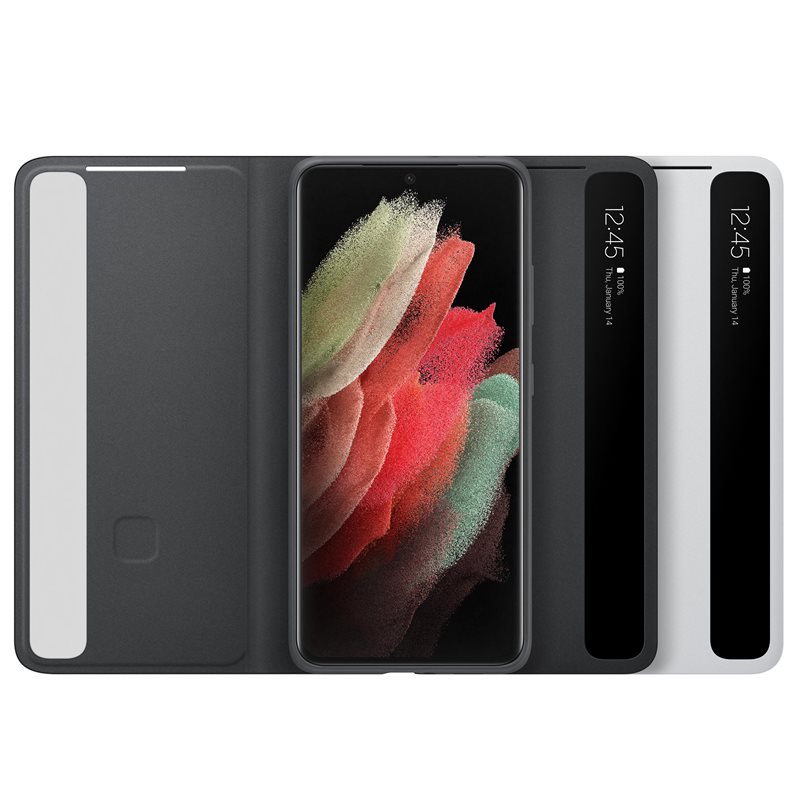 Samsung Clear View Cover EF-ZG998CJ - оригинален кейс, през който виждате информация от дисплея за Samsung Galaxy S21 Ultra (сив)