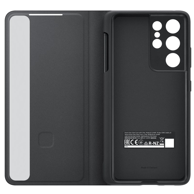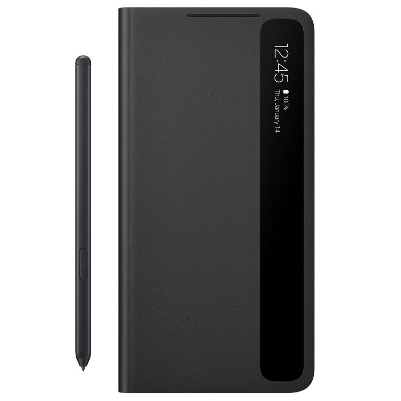 Samsung Clear View Cover EF-ZG99PC - оригинален кейс с отделение за S-Pen, през който виждате информация от дисплея за Samsung Galaxy S21 Ultra (черен)