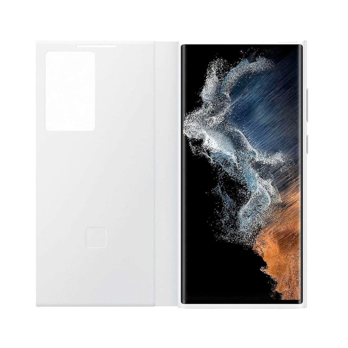 Samsung Clear View Cover EF-ZS908CWEGEE - оригинален кейс с антибактериално покритие, през който виждате информация от дисплея за Samsung Galaxy S22 Ultra (бял)