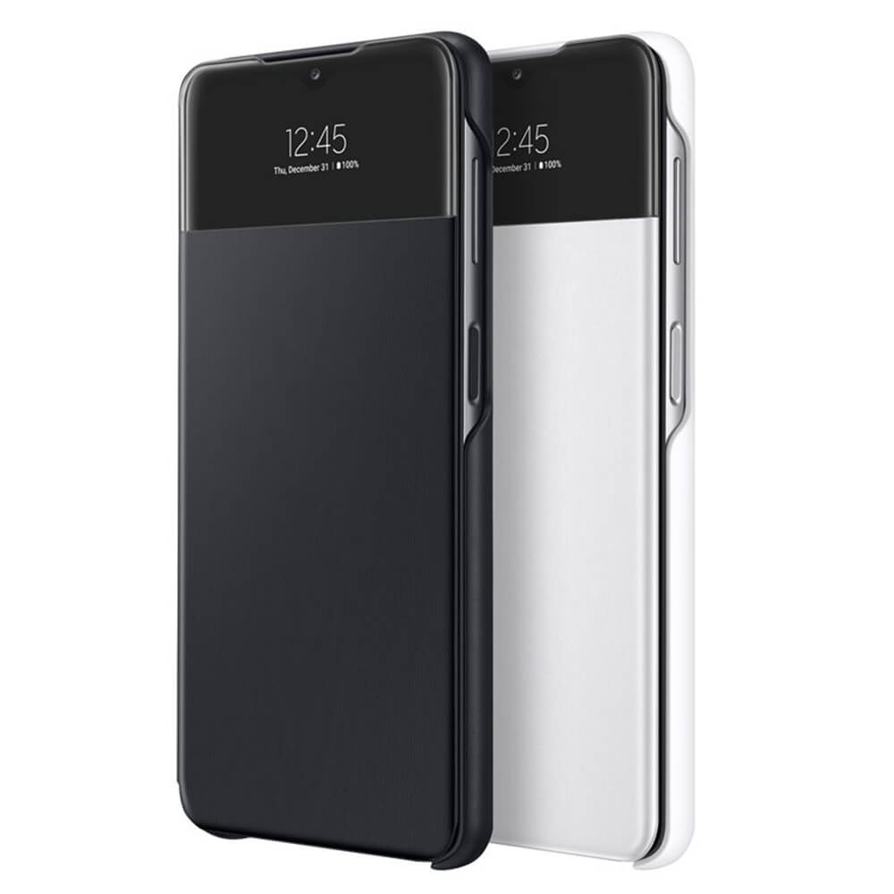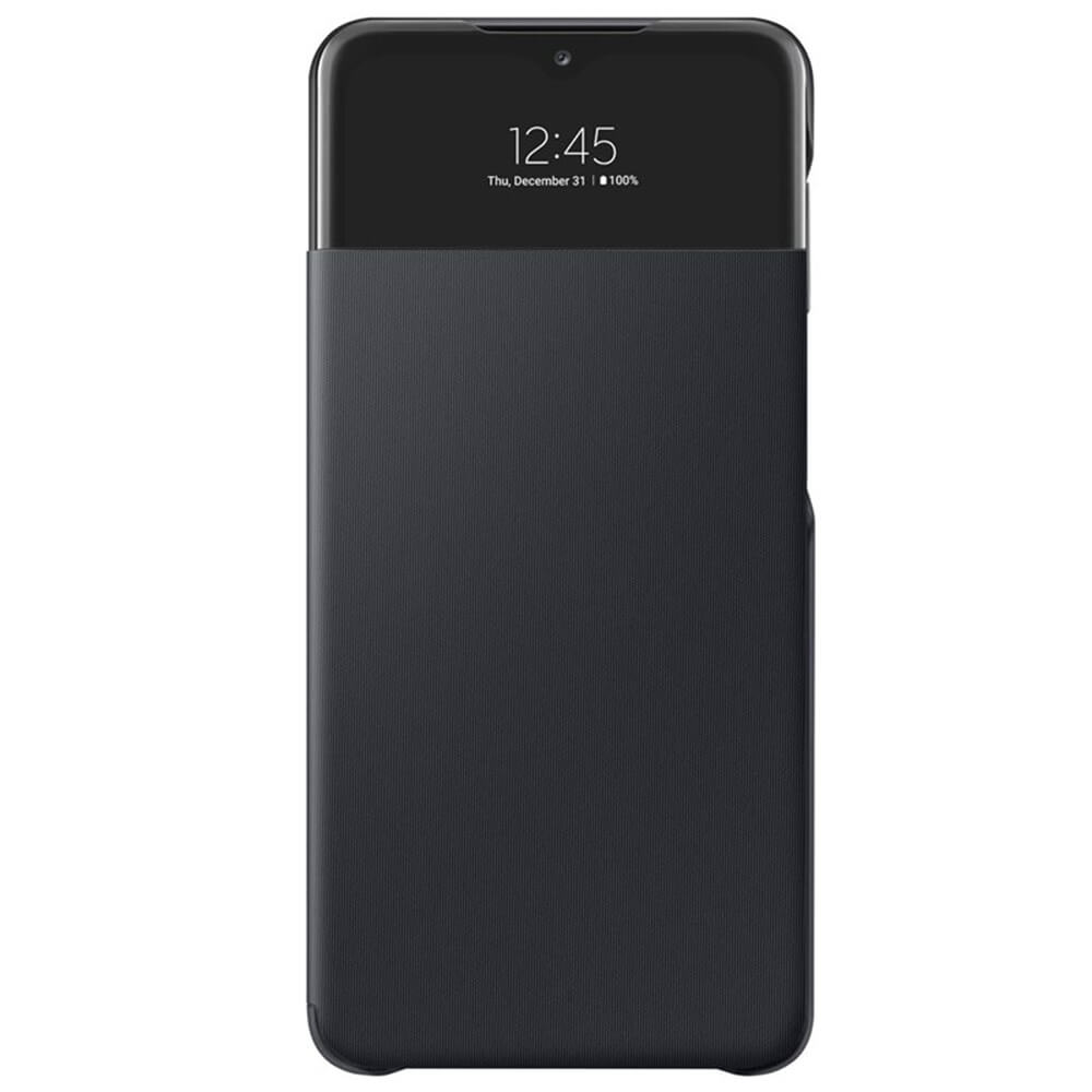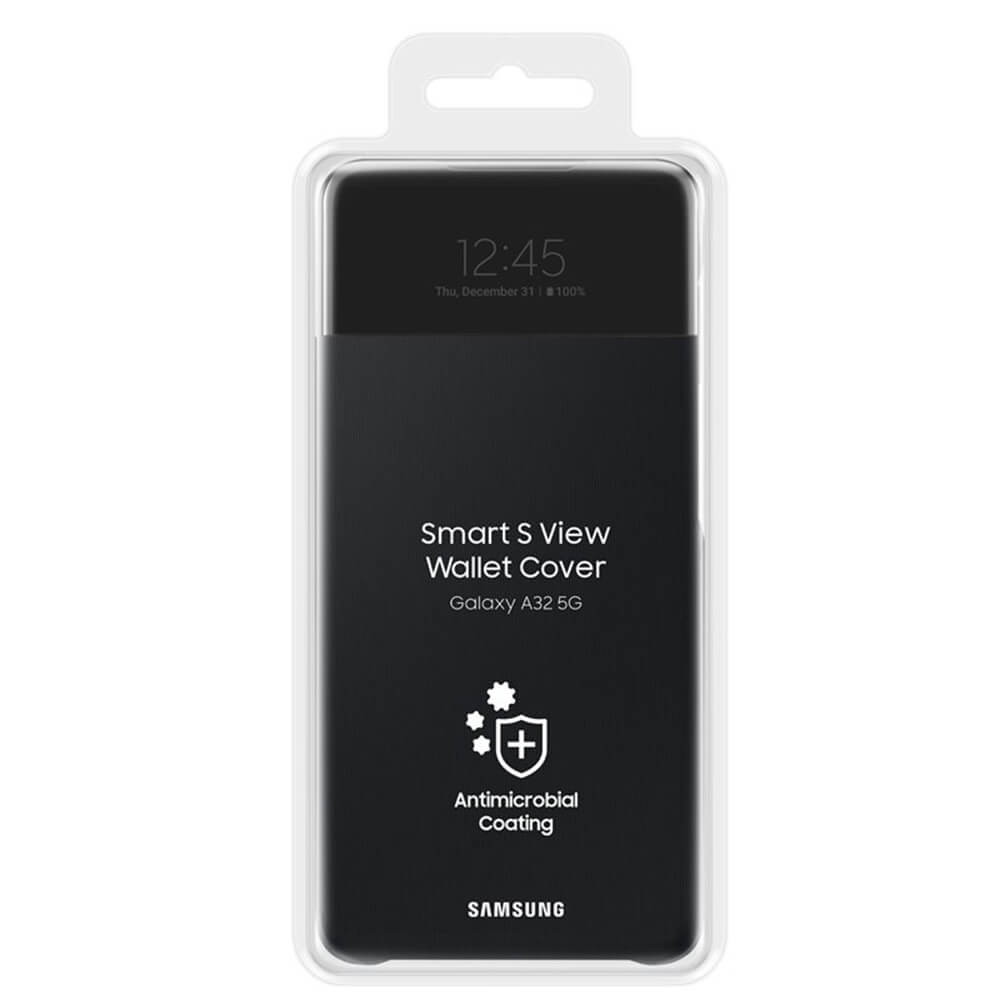 Samsung Galaxy S-View Wallet Cover EF-EA326PB - оригинален калъф, през който виждате информация от дисплея за Samsung Galaxy A32 5G (черен)