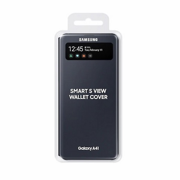 Samsung Galaxy S-View Wallet Cover EF-EA415PB - оригинален калъф през който виждате информация от дисплея за Samsung Galaxy A41 (черен)