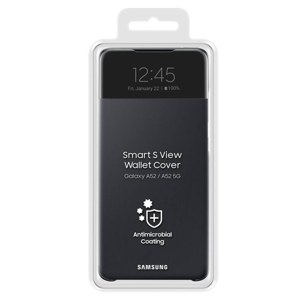 Samsung Galaxy S-View Wallet Cover EF-EA525PBEGEW - оригинален калъф, през който виждате информация от дисплея за Samsung Galaxy A52 (черен)