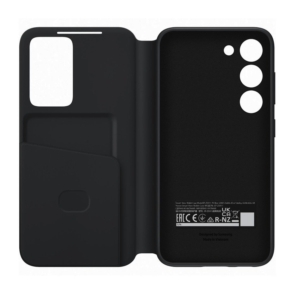 Samsung Galaxy S-View Wallet Cover EF-ZS911CB - оригинален калъф през който виждате информация от дисплея за Samsung Galaxy S23 (черен)