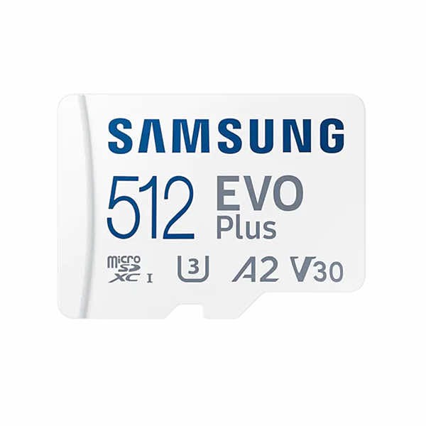 Samsung MicroSD 512GB EVo Plus A2 - microSD памет с SD адаптер за Samsung устройства (клас 10) (подходяща за GoPro, дронове и други)