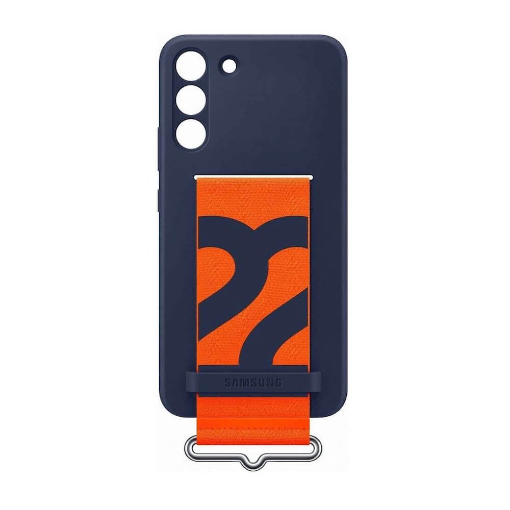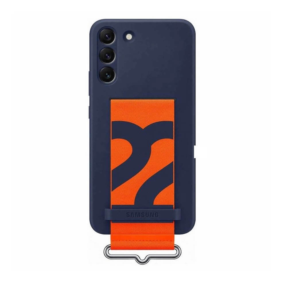 Samsung Silicone Cover With Strap EF-GS906TNEGWW - оригинален силиконов кейс с ластик против изпускане за Samsung Galaxy S22 Plus (тъмносин)