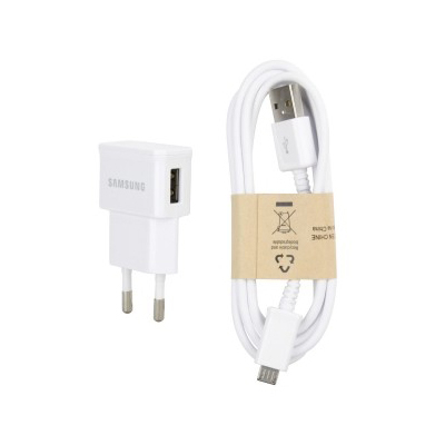 Samsung Travel Charger ETA0U81EWE - захранване за ел. мрежа и microUSB кабел за Samsung мобилни устройства (бял) (bulk)