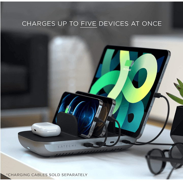 - Създайте свое собствено модерно място за зареждане, като същевременно поддържате цялата си електроника организирана със зареждащата станция Satechi Dock5. Идеална за семейни домове, работни пространства, класни стаи и др. Захранва до пет устройства едновременно с два USB-C PD порта, два USB-A порта и пад за Qi безжично зареждане