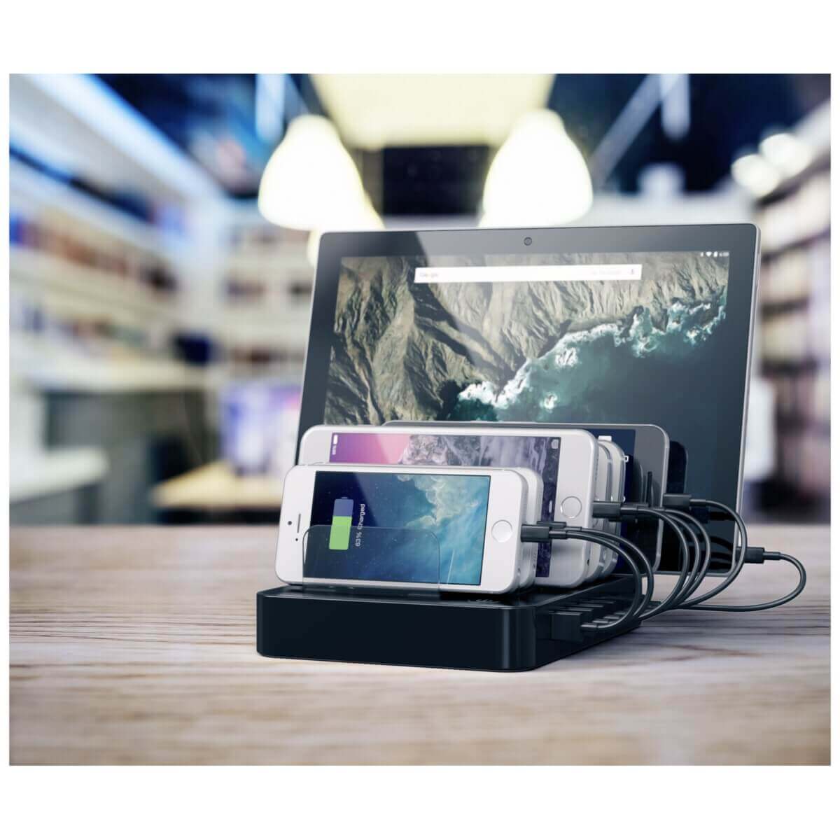 § Универсална док станция за зареждане на смартфони и таблети, която разполага с 5 USB изхода и 2 USB-C изхода