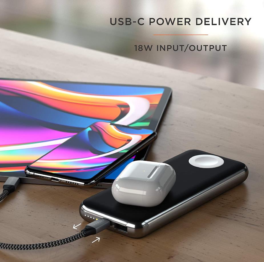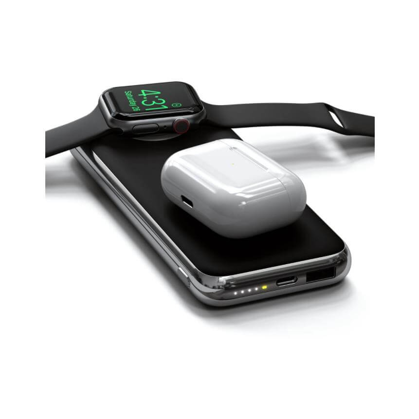Satechi Quatro Wireless Power Bank 10000mAh - безжична външна батерия за мобилни устройства, Apple AirPods и Apple Watch (черен)
