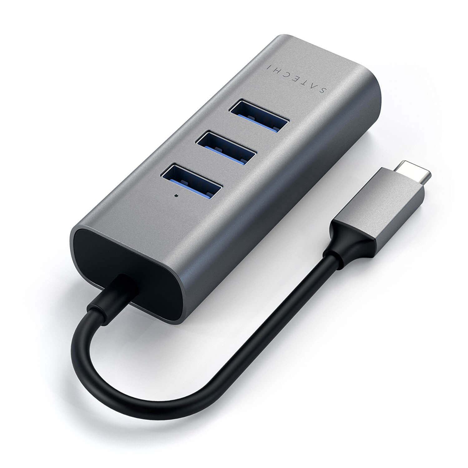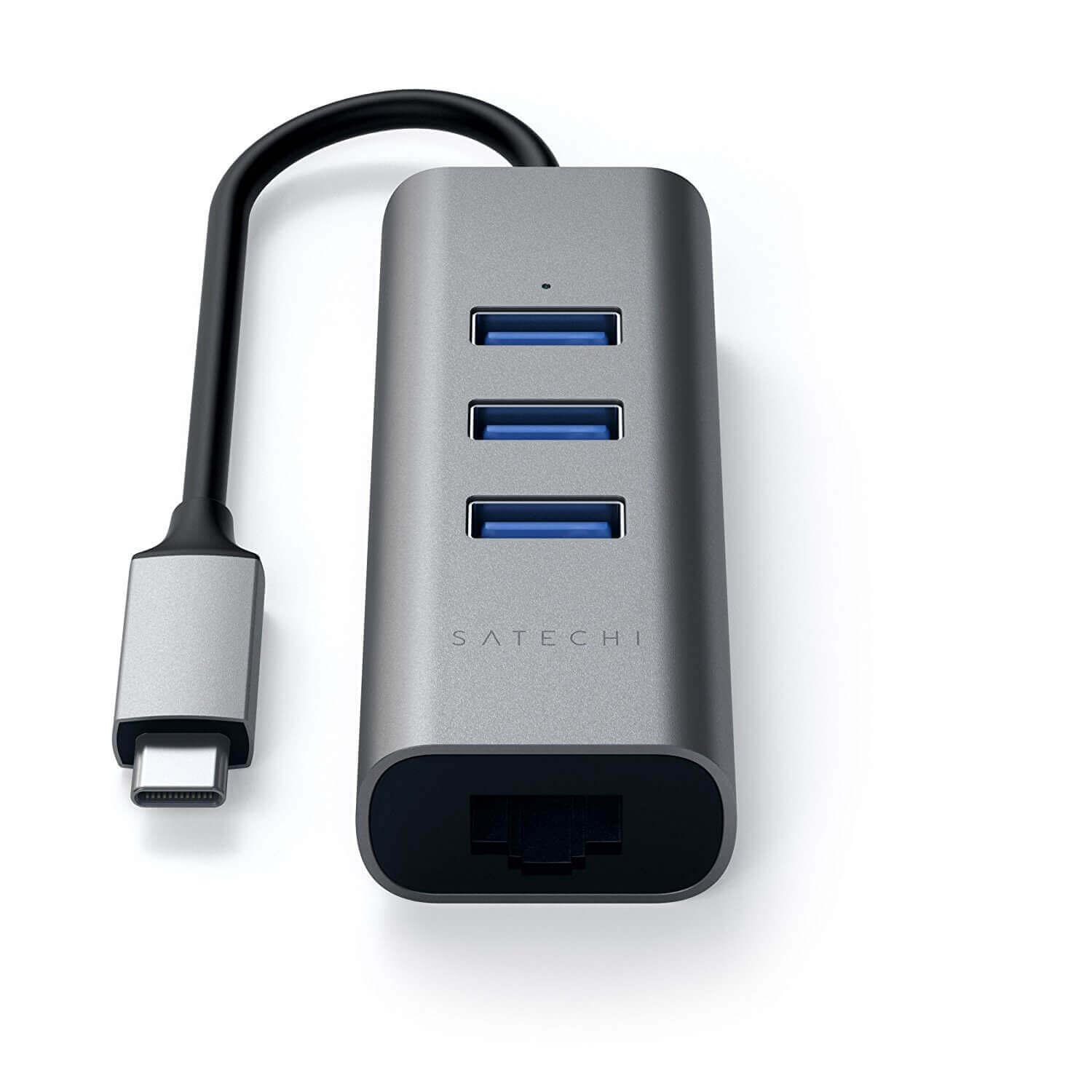 Satechi USB-C 2-in-1 Ethernet & USB Hub - 3-портов USB хъб и Gigabit Ethernet порт за MacBook и устройства с USB-C (тъмносив)