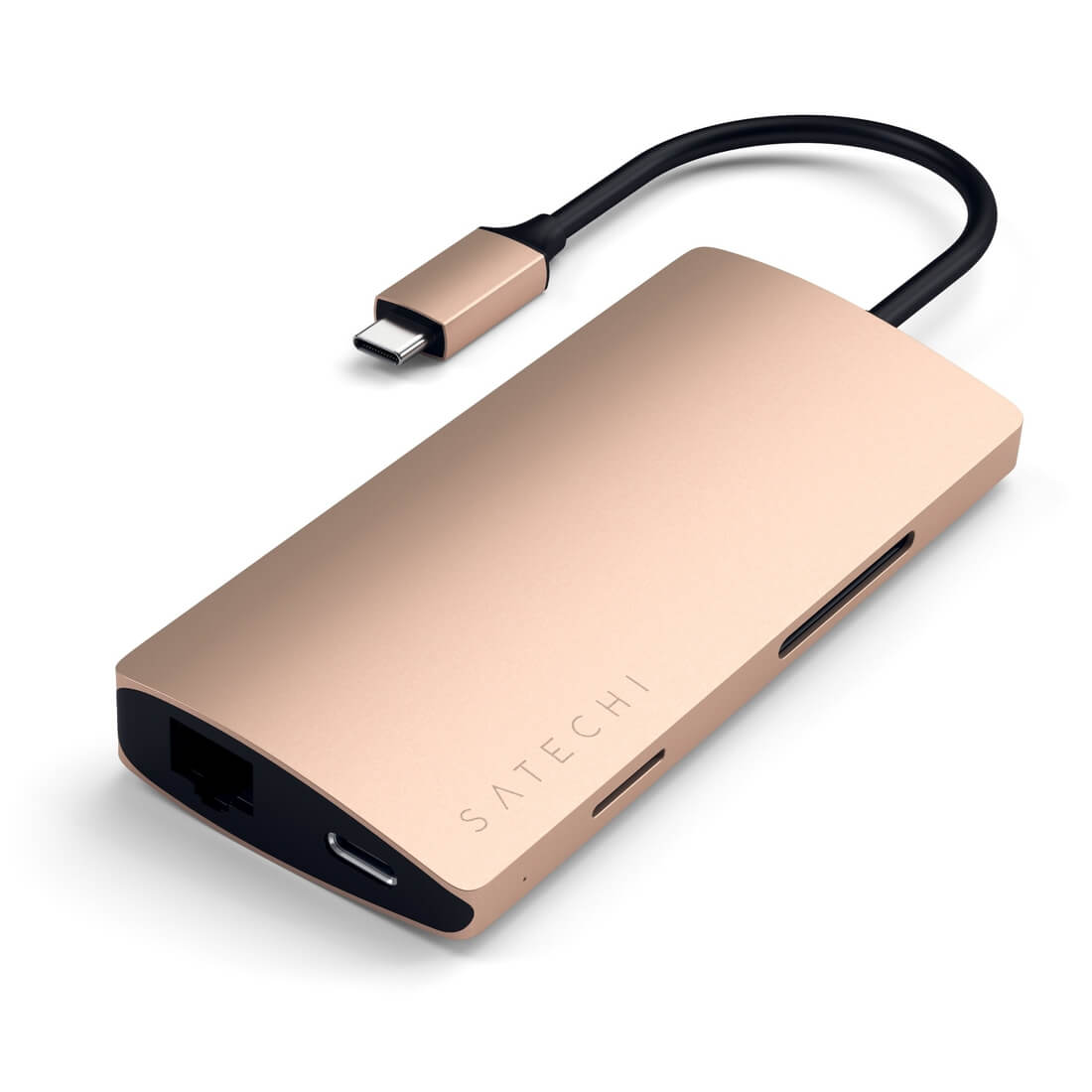 Satechi USB-C Aluminum Multiport 4K Adapter v2 - мултифункционален хъб за свързване на допълнителна периферия за компютри с USB-C (златист)