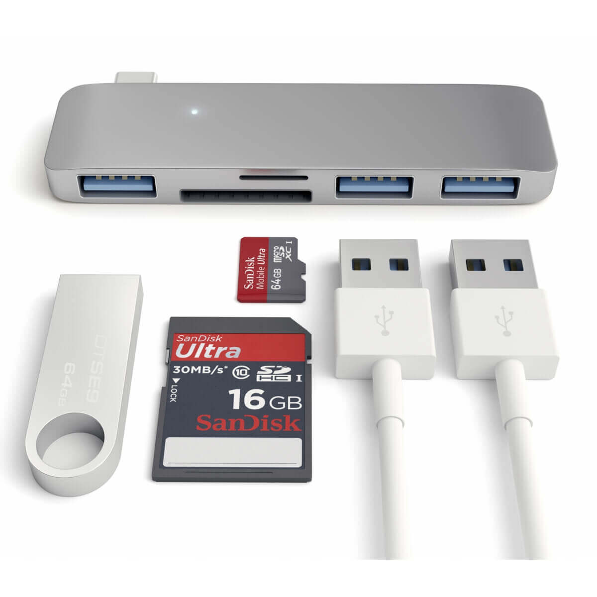 Satechi USB-C USB Hub - мултифункционален хъб за свързване на допълнителна периферия за компютри с USB-C (тъмносив)