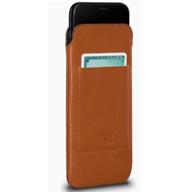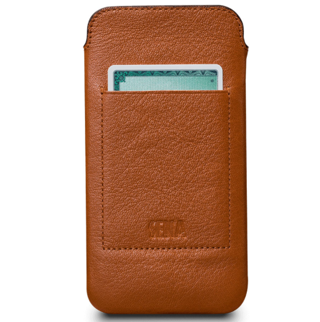 SENA Bence UltrasSlim Wallet - кожен калъф (естествена кожа, ръчна изработка) с джоб за кредитна карта за iPhone XS Max (кафяв)