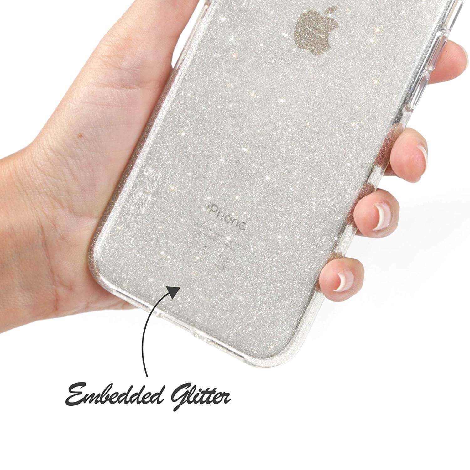 - Задната част на кейса е посипана с брокат, за по-ефектна визия