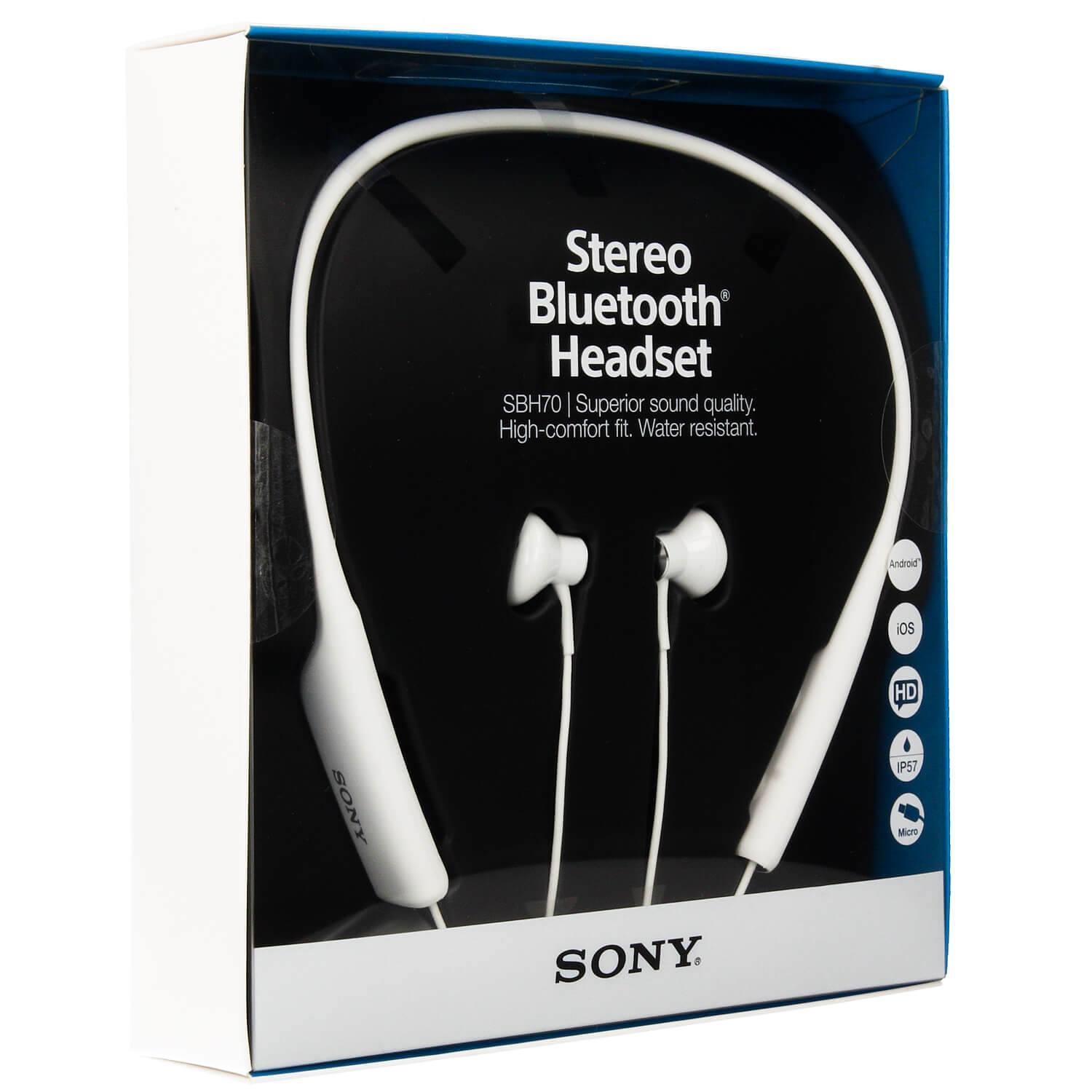 Sony Bluetooth Headset Stereo SBH70 - водоустойчиви bluetooth слушалки с микрофон за мобилни устройства (бял)