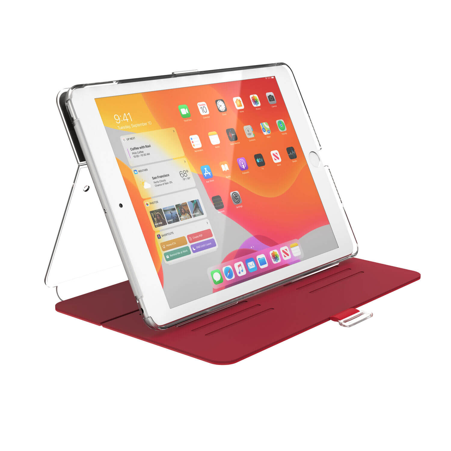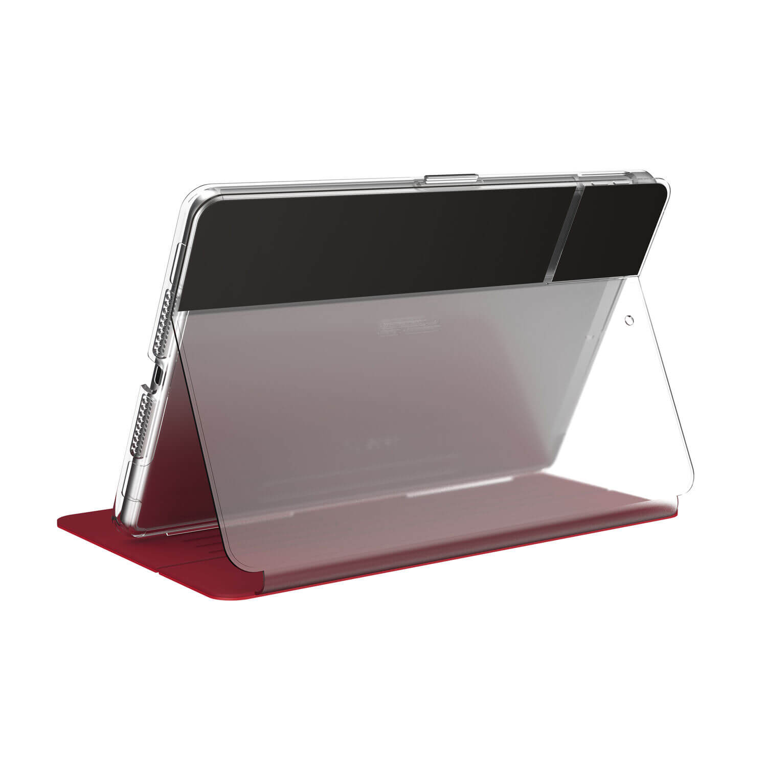 Speck Balance Folio Case - текстилен калъф и поставка за iPad 8 (2020), iPad 7 (2019) (червен-прозрачен)