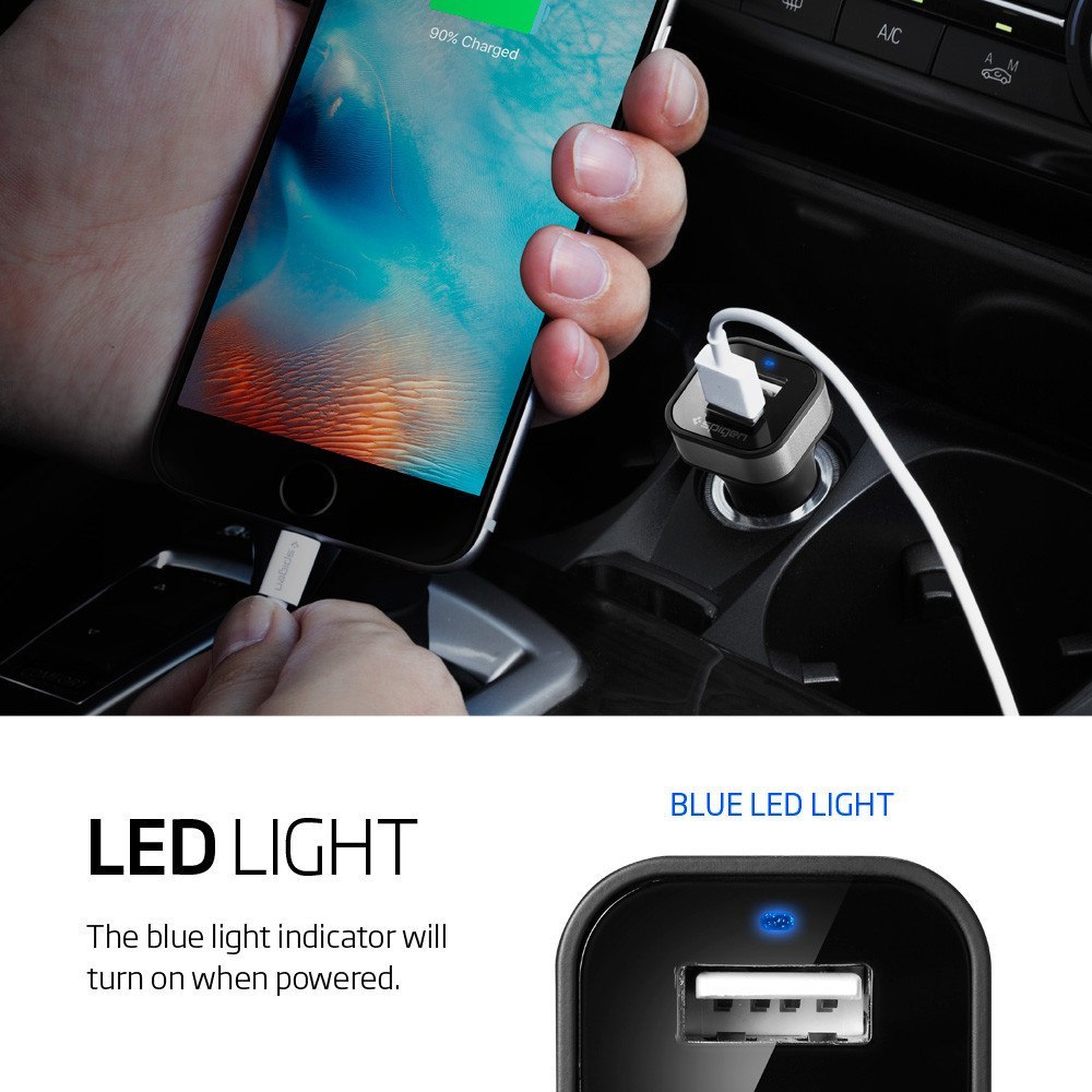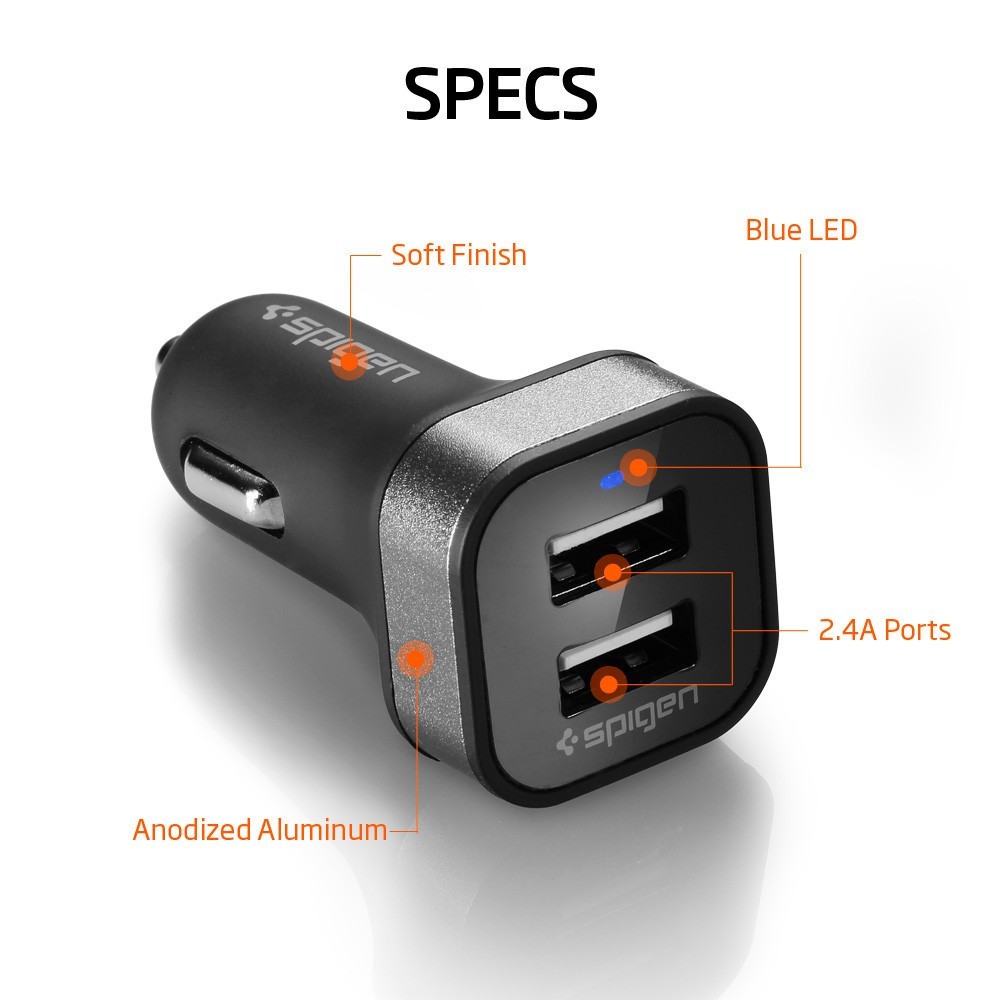 § Spigen 4.8 Amp Dual Port USB Car Charger позволява едновременното зареждане на два таблета, два телефона или таблет и телефон