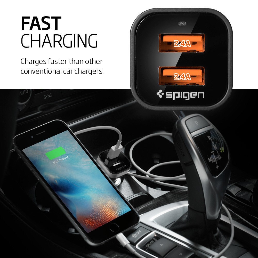 Spigen 4.8 Amp Dual Port USB Car Charger F24QC - зарядно за кола с два USB изхода (2.4A + 2.4A) за мобилни устройства