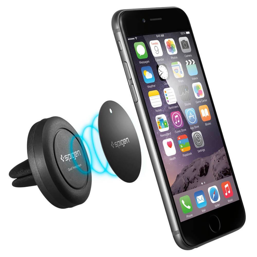 § Air Magnetic Vent Mount е иновативна магнитна поставка за смартфони и други мултимедийни устройства, като от Spigen гарантират, че ще удържи всеки смартфон стабилно