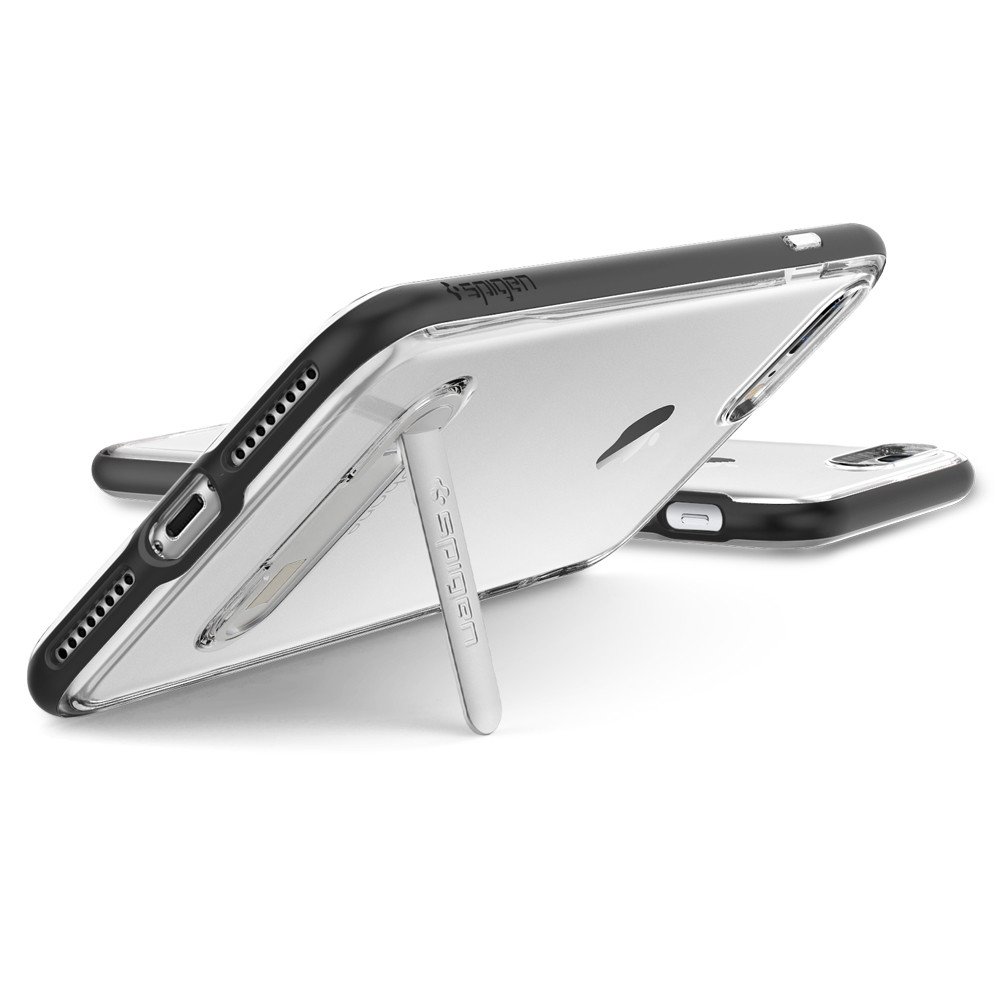 Spigen Crystal Hybrid Case - хибриден кейс с висока степен на защита и поставка за iPhone 8 Plus, iPhone 7 Plus (прозрачен-черен)