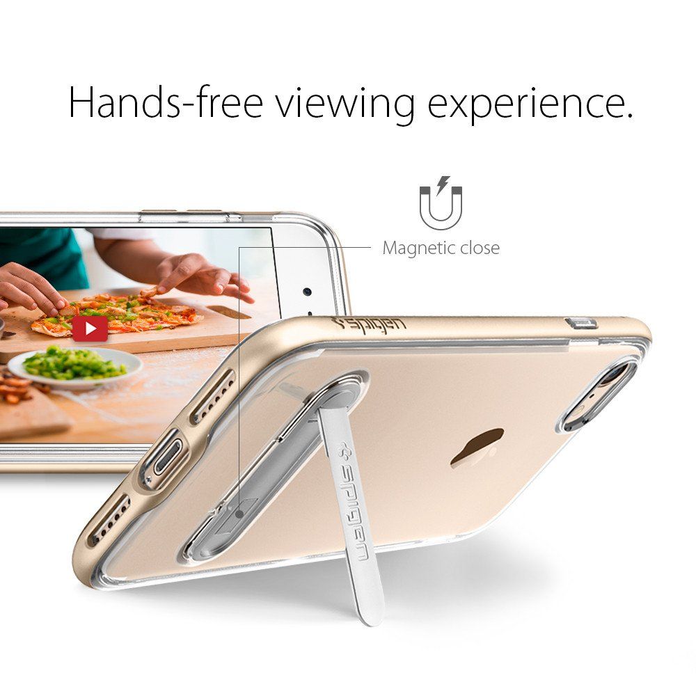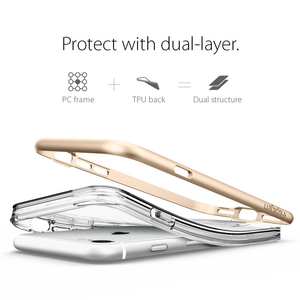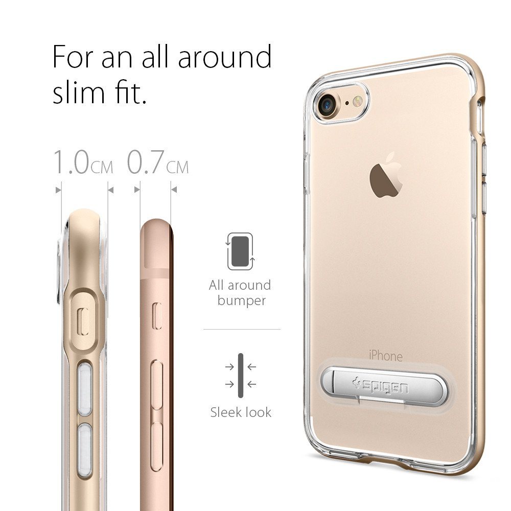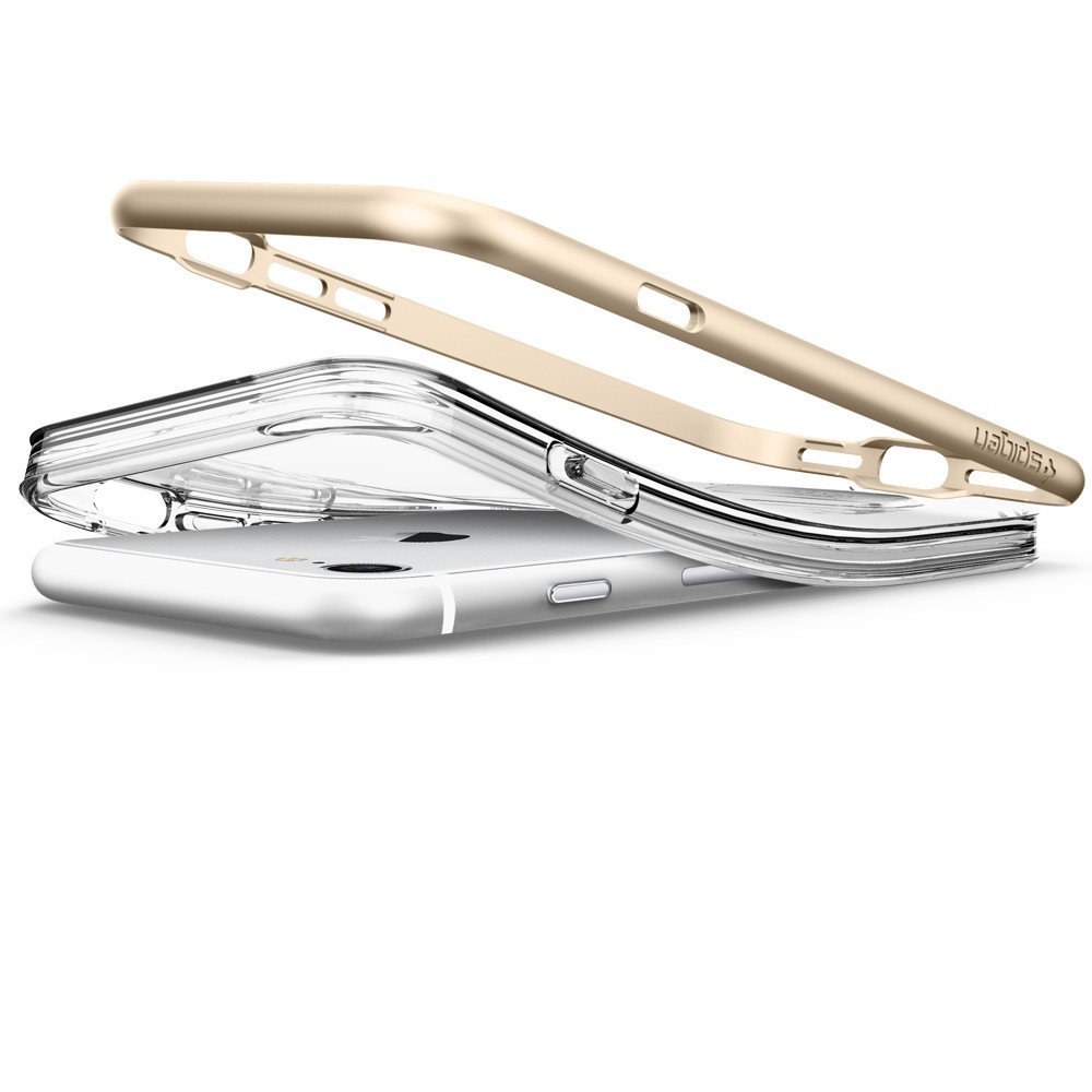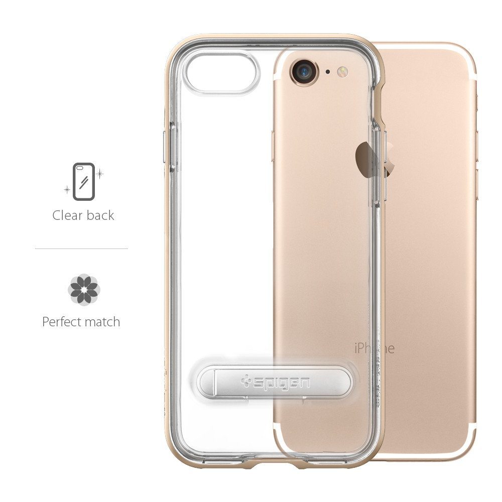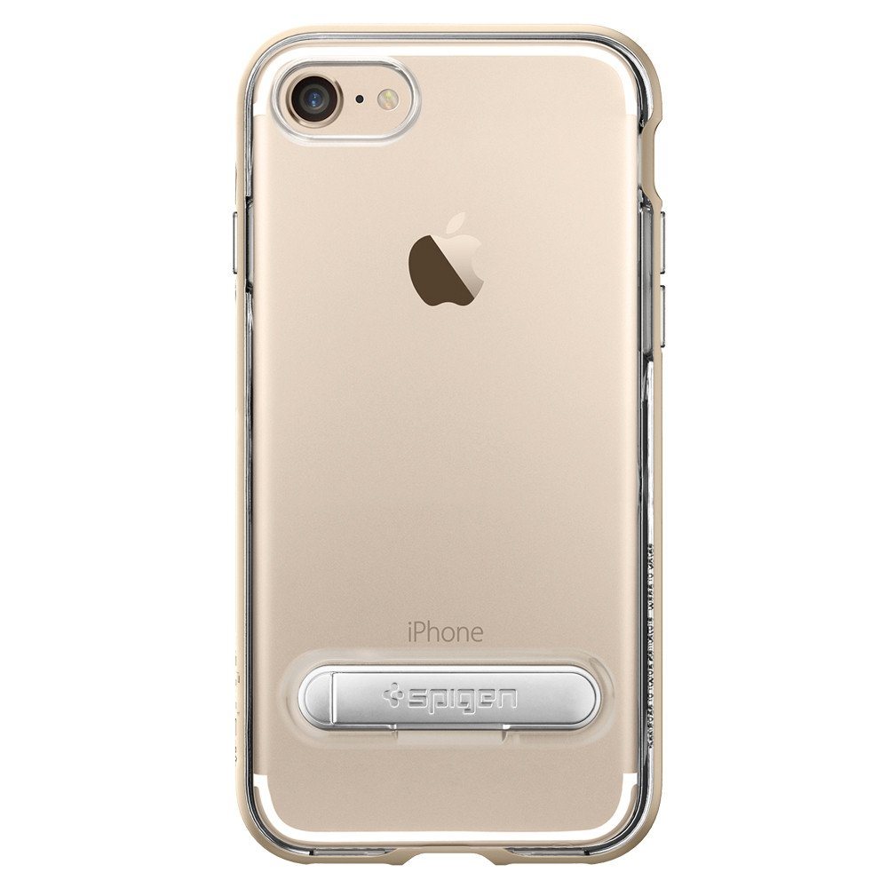 Spigen Crystal Hybrid Case - хибриден кейс с висока степен на защита и поставка за iPhone 8, iPhone 7 (прозрачен-златист)
