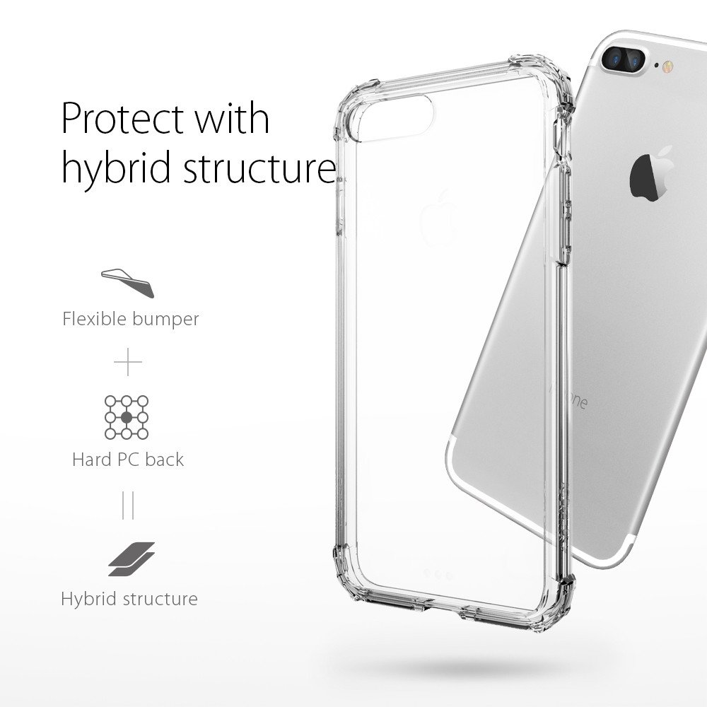 Spigen Crystal Shell Case - хибриден кейс с висока степен на защита за iPhone 8 Plus, iPhone 7 Plus (прозрачен)