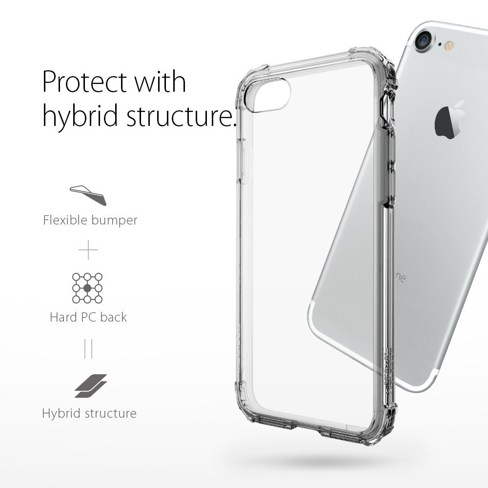 Spigen Crystal Shell Case - хибриден кейс с висока степен на защита за iPhone 8, iPhone 7 (прозрачен-сив)