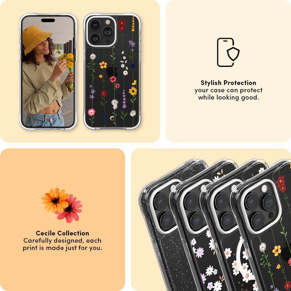 Spigen Cyrill Cecile Case Flower Garden - хибриден кейс с висока степен на защита за iPhone 15 Pro (цветни мотиви)