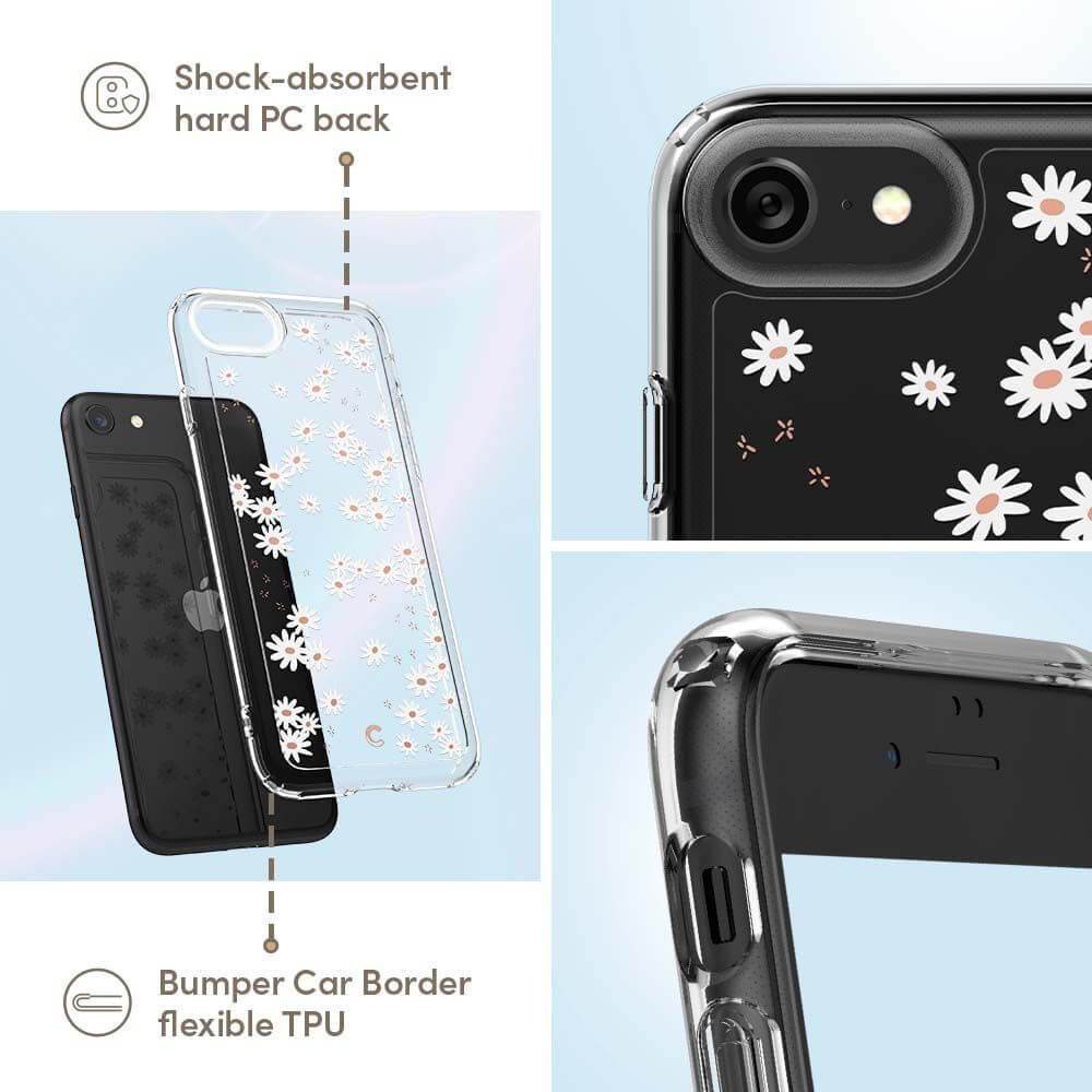 Spigen Cyrill Cecile Case White Daisy - хибриден кейс с висока степен на защита за iPhone SE (2022), iPhone SE (2020), iPhone 8, iPhone 7 (цветни мотиви)