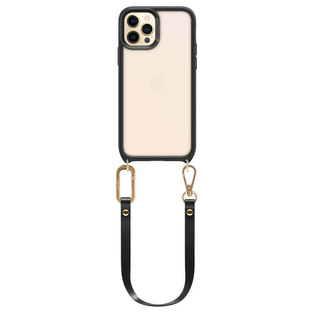 Spigen Cyrill Classic Charm Case - дизайнерски кейс с висока защита и връзка за носене за iPhone 12 Pro, iPhone 12 (черен-прозрачен)
