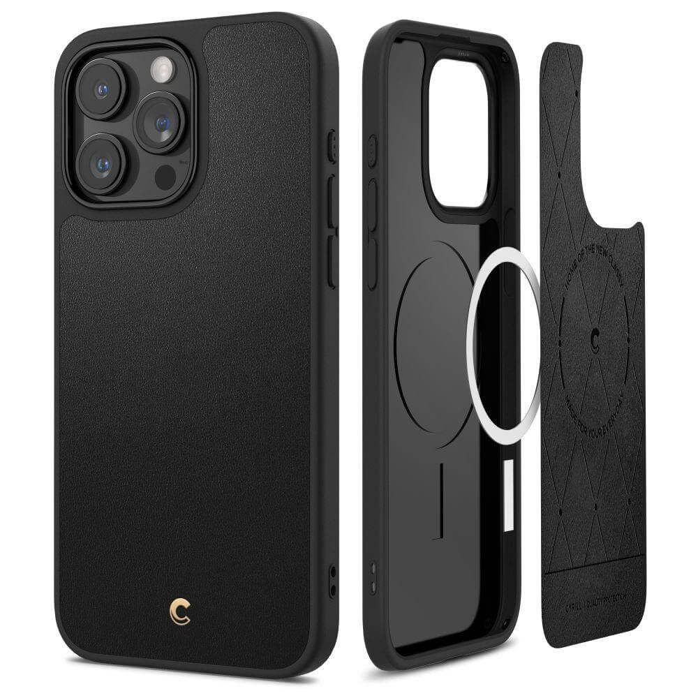Spigen Cyrill Kajuk MagSafe Leather Case - дизайнерски кожен кейс с MagSafe за iPhone 15 Pro Max (черен)