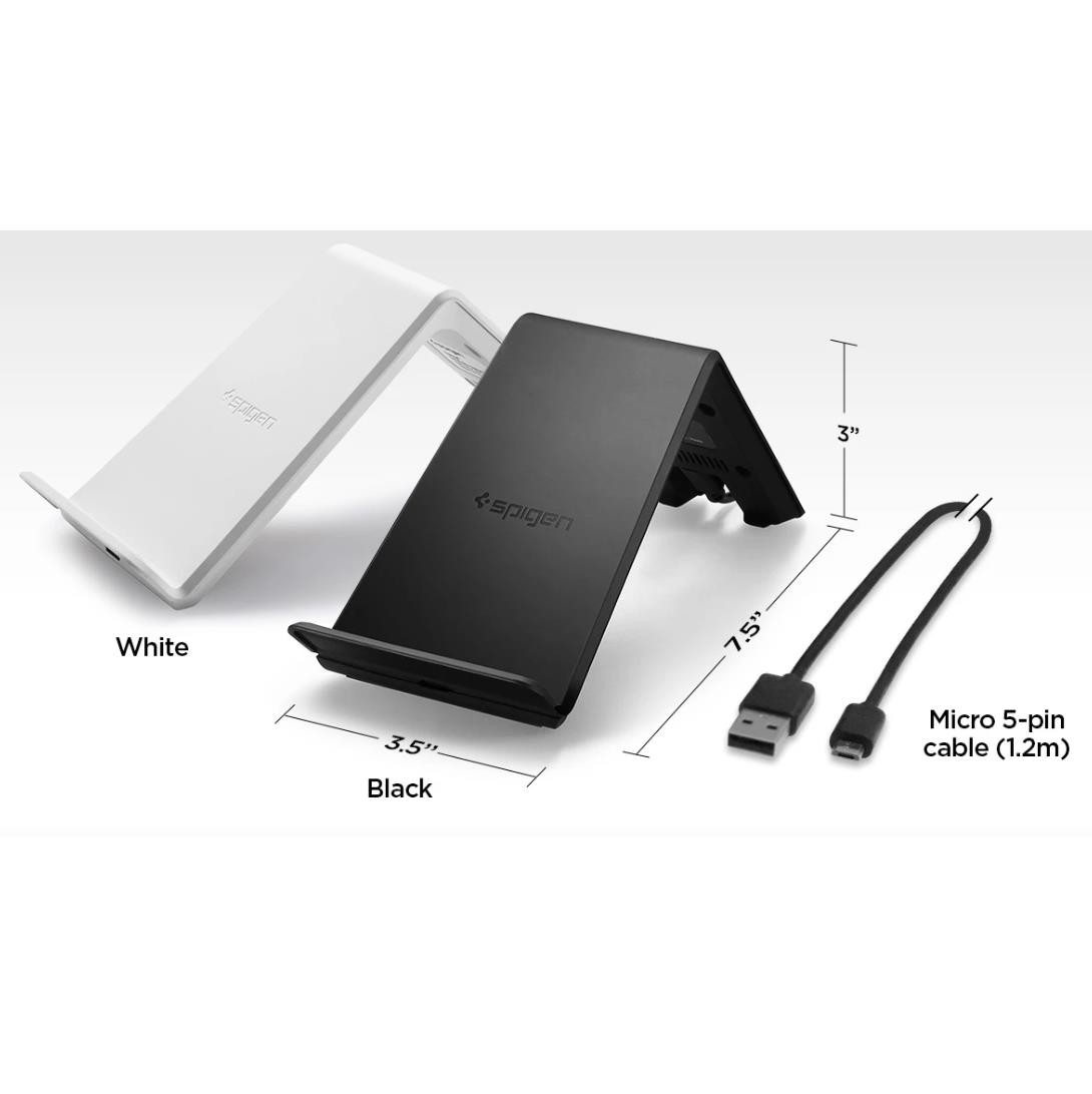 Spigen Dual Coil Fast Wireless Charger Stand F303W - поставка (пад) за безжично зареждане за QI съвместими смартфони (черен)