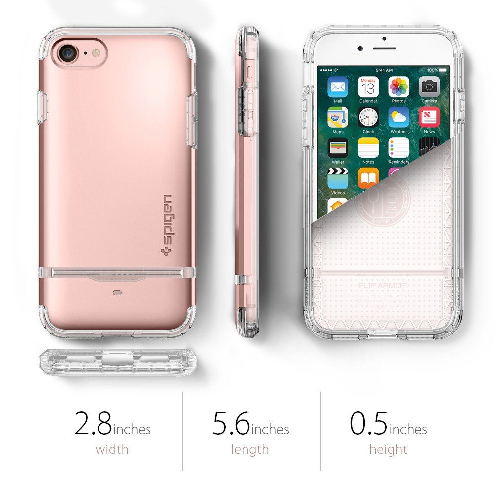 Spigen Flip Armor Case - хибриден кейс с отделение за кр. карти и най-висока степен на защита за iPhone 8, iPhone 7 (розово злато)