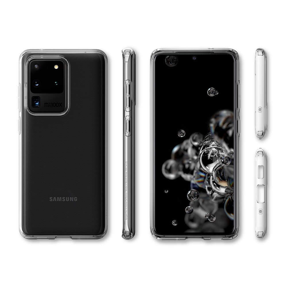 Spigen Liquid Crystal Case - тънък качествен силиконов (TPU) калъф за Samsung Galaxy S20 Ultra (прозрачен)