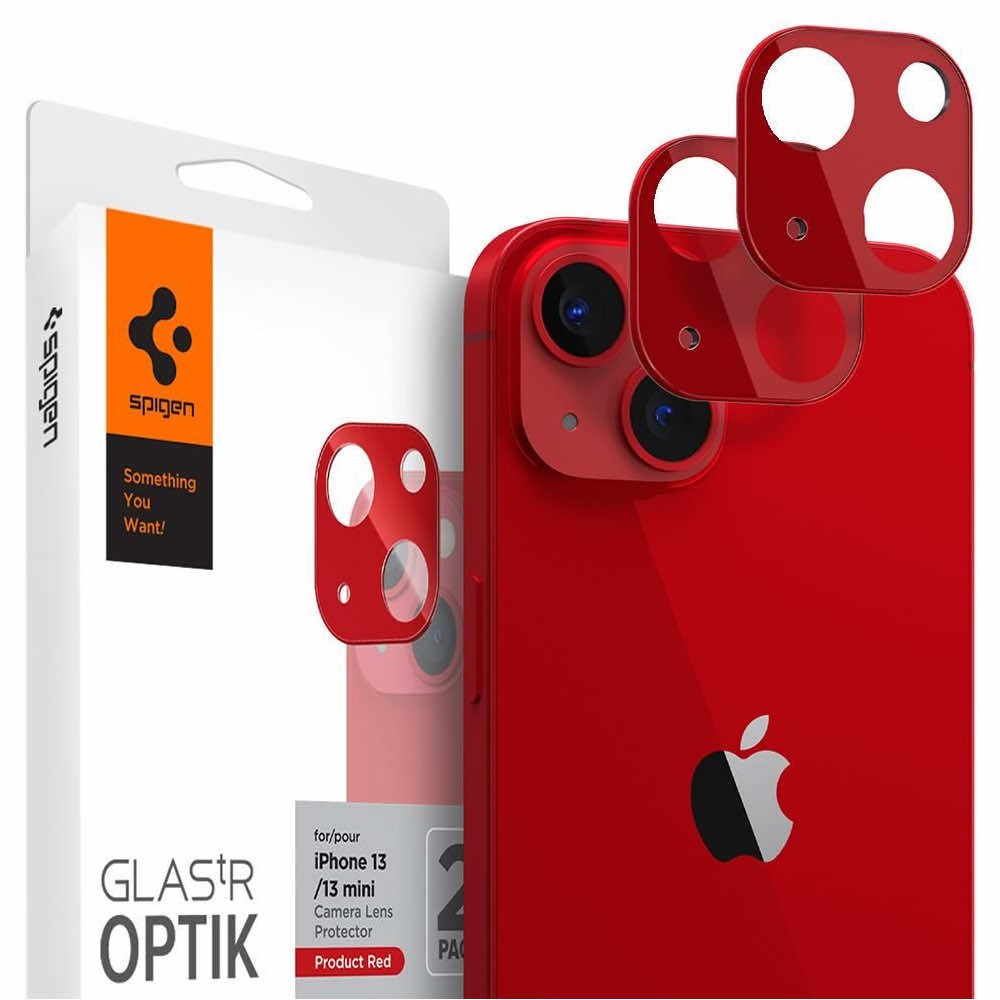 Spigen Optik Lens Protector - комплект 2 броя предпазни стъклени протектора за камерата на iPhone 13, iPhone 13 mini (червен)