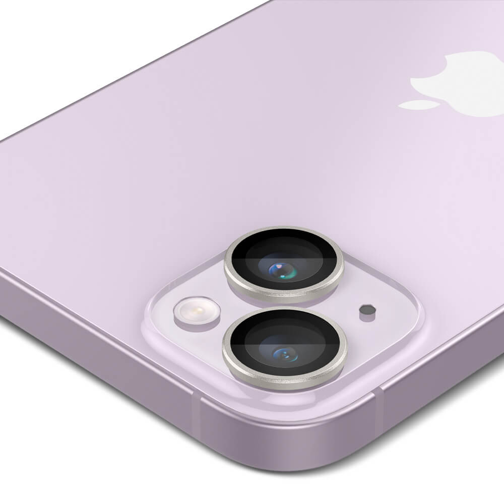 Spigen Optik Pro tR Ez Fit Lens Protector - 2 комплекта предпазни стъклени лещи за камерата на iPhone 14, iPhone 14 Plus (лилав)