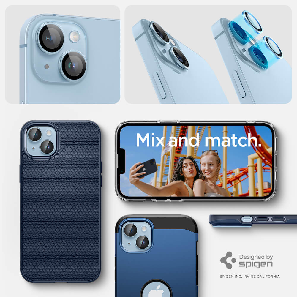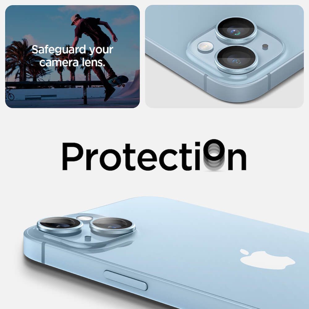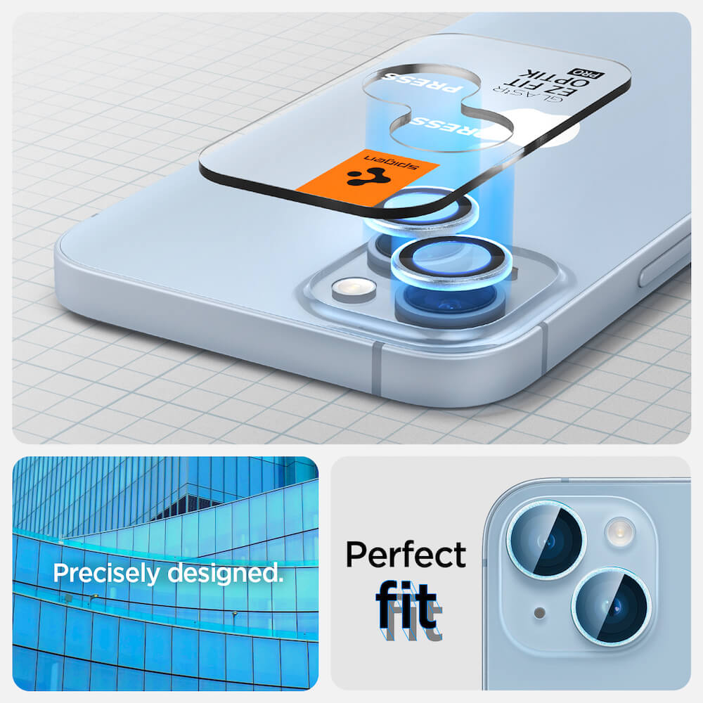 Spigen Optik Pro tR Ez Fit Lens Protector - 2 комплекта предпазни стъклени лещи за камерата на iPhone 14, iPhone 14 Plus (син)